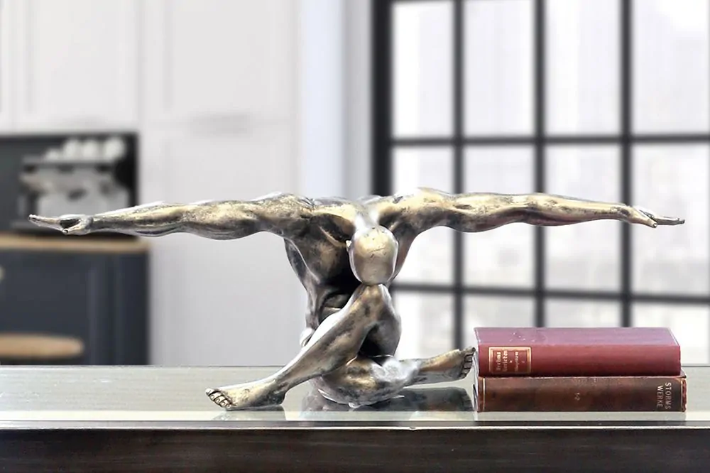 Dekorační soška Akt muže s rozpaženýma rukama je vyrobena z polyresinu, pevného materiálu odolného proti poškození. Dekorace je zlaté barvy s antique provedením. Soška znázorňuje sedícího muže a jeho vypracované tělo. Dekorační předmět se bude skvěle hodit do jakékoliv místnosti.