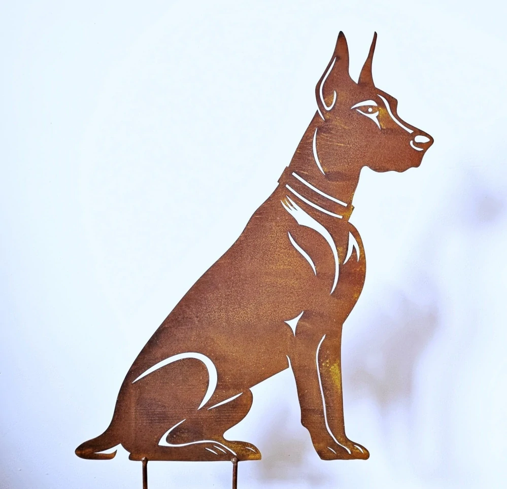 Tento kovový dobrman v sedící poloze je elegantní a výrazná dekorace, která vypadá jako skutečný strážce domu a zahrady.Je to perfektní volba pro milovníky psů a ty, kteří milují jedinečné dekorace.Nejlépe se bude vyjímat u brány, vchodu nebo podél cesty vedoucí k vašemu domu.