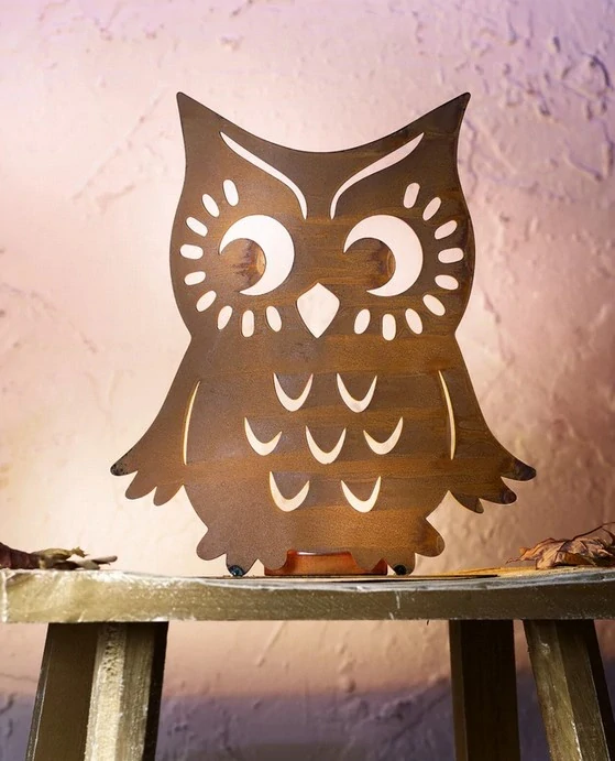 - Kovový stojan na svíčku Sova rezavý VÝPRODEJ