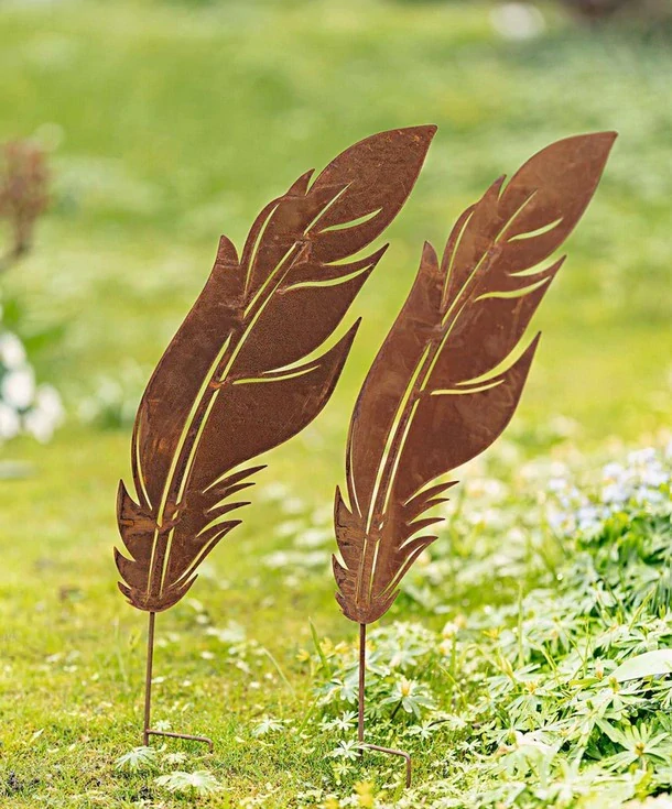 Kovová dekorace Peříčko je s povrchovou úpravou skutečné rzi. Dekorace dodá vaší zahradě rustikální kouzlo a stane se skutečným poutačem v daném prostoru. Ideální pro milovníky vintage dekorací.