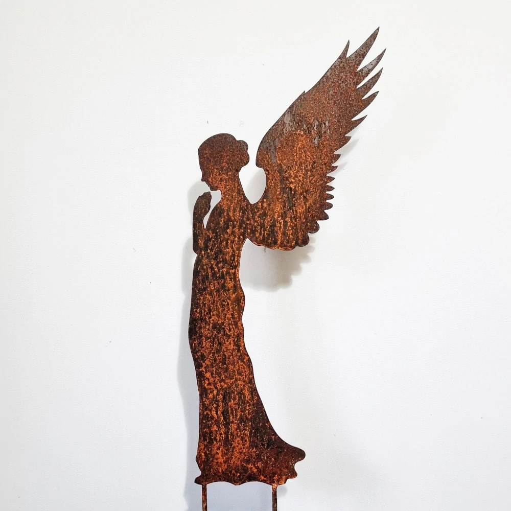 Krásný, štíhlý anděl z narezavělého kovu ozdobí každou zahradu. Nejkrásněji se bude vyjímat na zahradě s romantickým charakterem jak mezi rostlinami, tak u vodní nádrže. Dekorace má univerzální charakter a je vhodná pro každé roční období.
