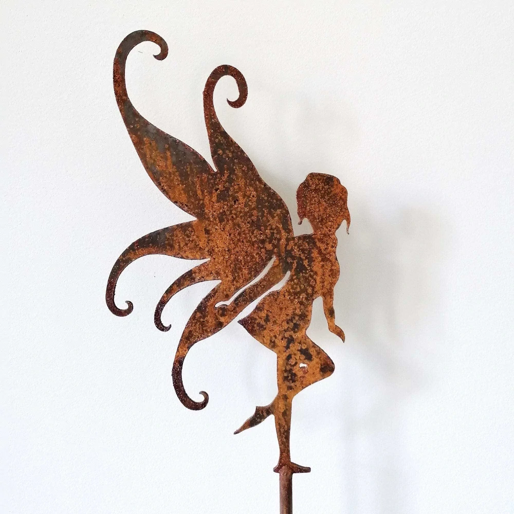 Krásná kovová zahradní dekorace v podobě jemného skřítka na vysoké tyči. Ideální pro zdobení květinového záhonu. Nejlépe se bude hodit v zahradním zákoutí s romantickým charakterem.